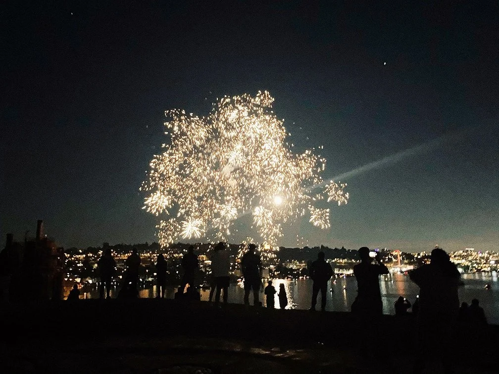 Fireworks visible from Gas Works Park on July 4. Bad for air quality, but pretty.