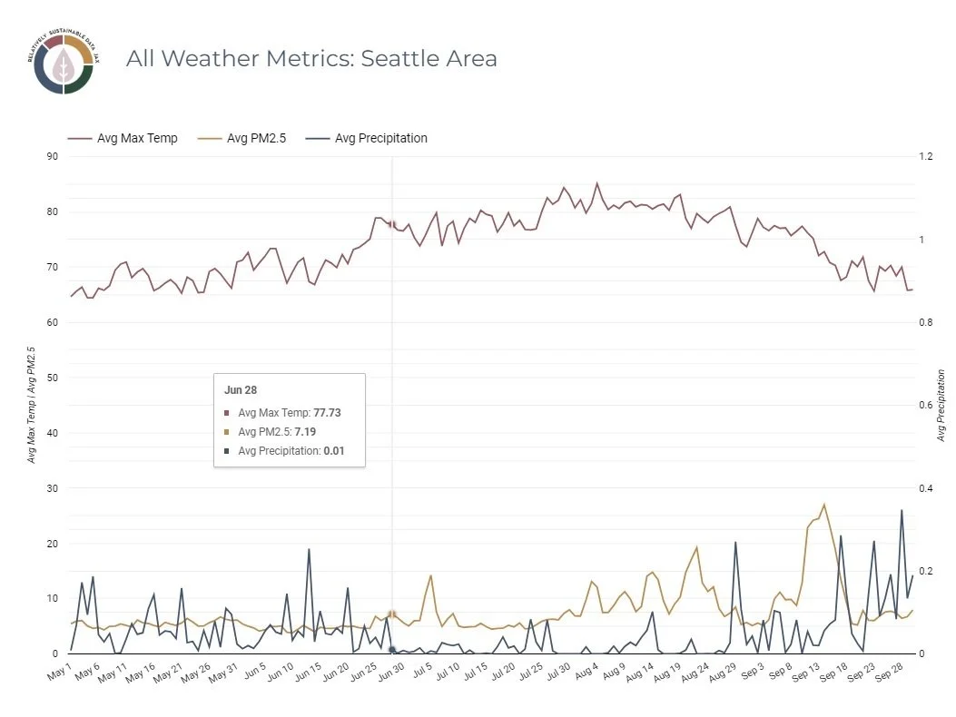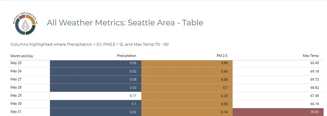 All air quality data is from PSCleanAir.org using an average of the the “King County” group of stations. Data goes back as far as 2015.
