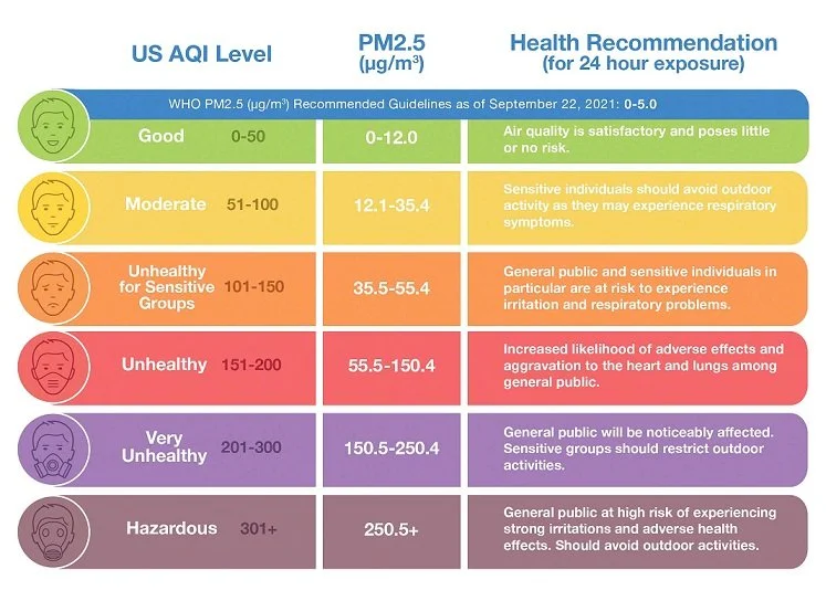 I established parameters following WHO guidelines for “Good” levels of PM2.5 for this analysis, which was 12.0 μg/m³ or less. Data ranges from May 2015 - July 2023 (eight years of available data).